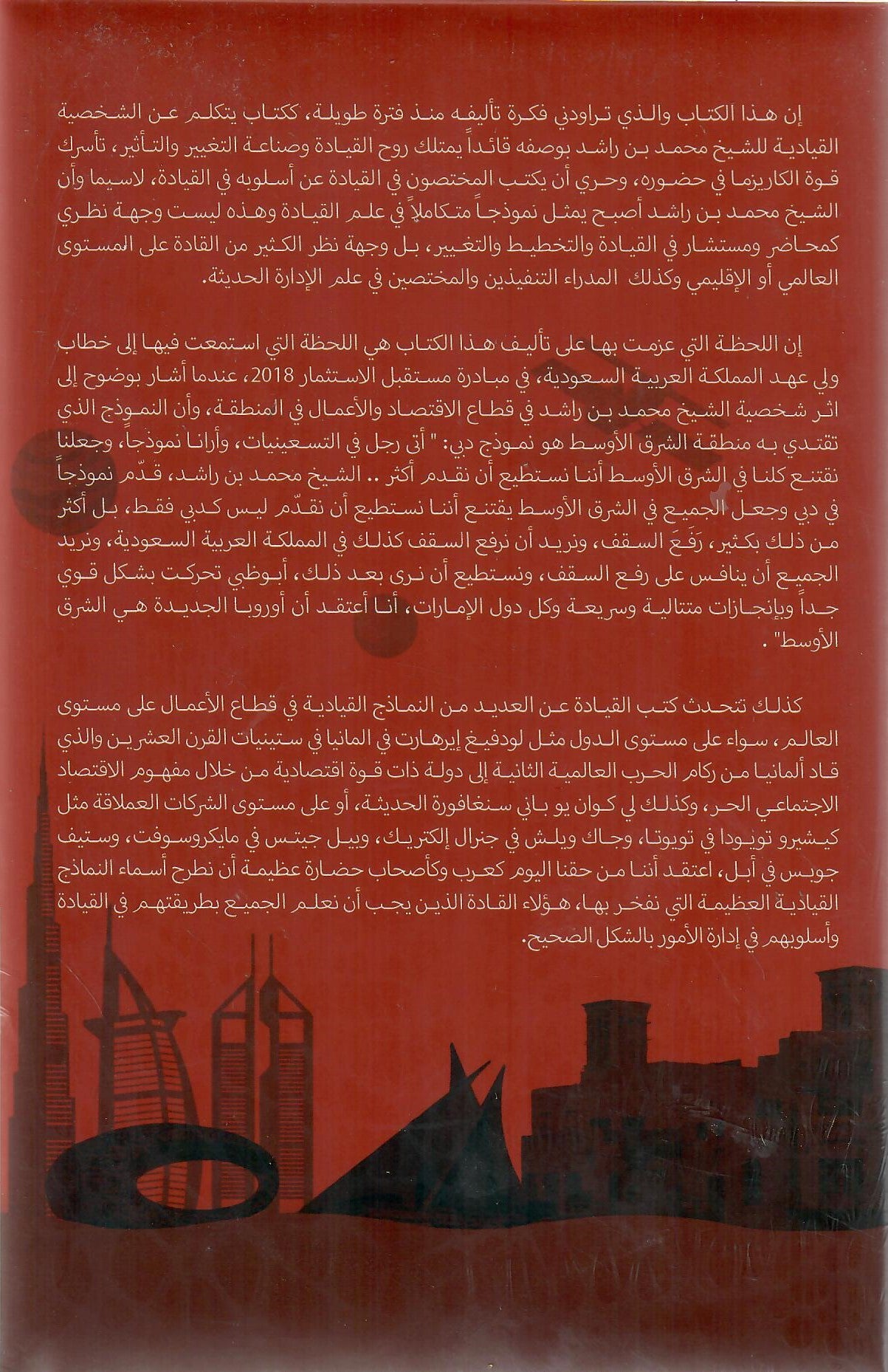 إن هذا الكتاب، الذي تراودني فكرة تأليفه منذ فترة طويلة، يتناول الشخصية القيادية للشيخ محمد بن راشد، بوصفه قائدًا يمتلك روح القيادة وصناعة التغيير والتأثير. تأسرك قوة الكاريزما في حضوره، ويستحق أن يكتب عنه المختصون في القيادة